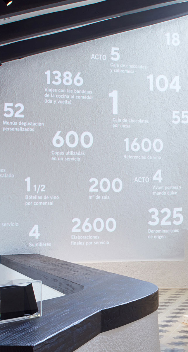Se simplificó el montaje de las mesas, pasando de mesas repletas de herramientas y elementos decorativos a una puesta en escena minimalista en la que las herramientas de degustación aparecían en el preciso momento en el que se necesitaban.