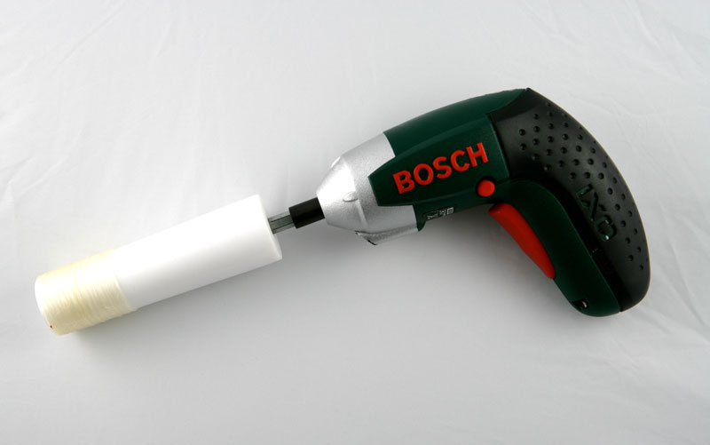 La décontextualisation d’un outil de bricolage, sur lequel était fixé un adaptateur, a permis de produire une barbe à papa très fine.