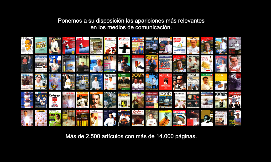Il va aussi sans dire que les relations avec les professionnels des médias ont largement contribué à consolider et à étoffer les piliers de la culture d’entreprise d’elBulli. Parce qu’une bonne interview impliquait nécessairement de nouvelles réflexions qui permettaient à l’équipe à consolider sa façon de penser. C’est aussi une partie fondamentale de son héritage.