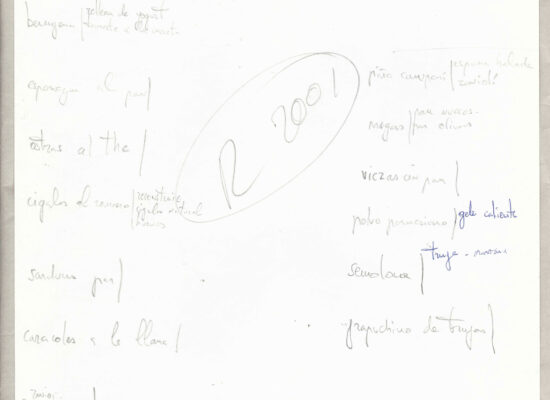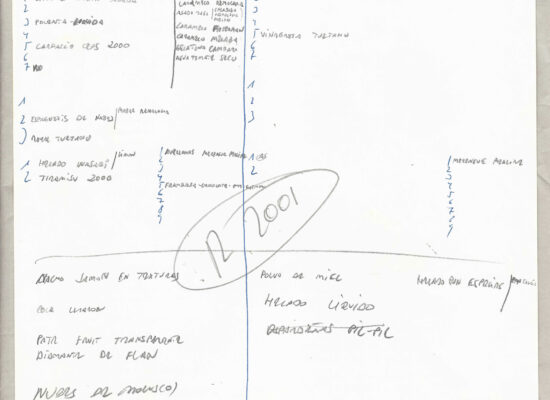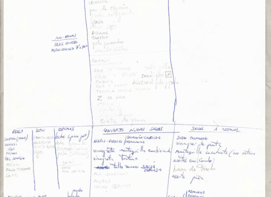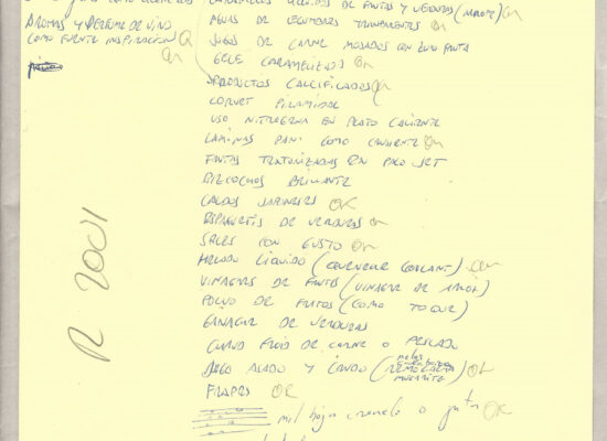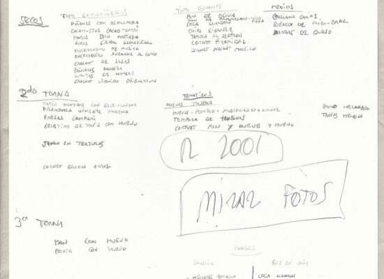 Observaciones: Anàlisi de la cuina de elBulli 2000, Productes / Tècniques / Eines, Els sentits, Cultura gastronòmica, Definicions tècniques, Poster: agrupació d'idees