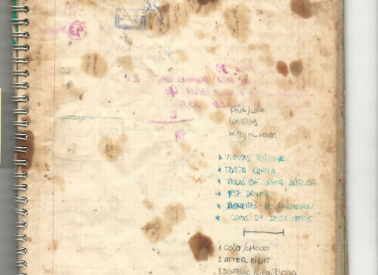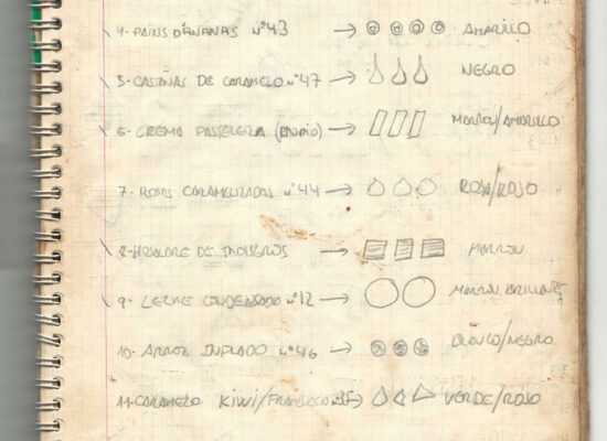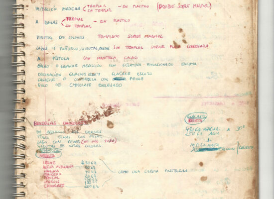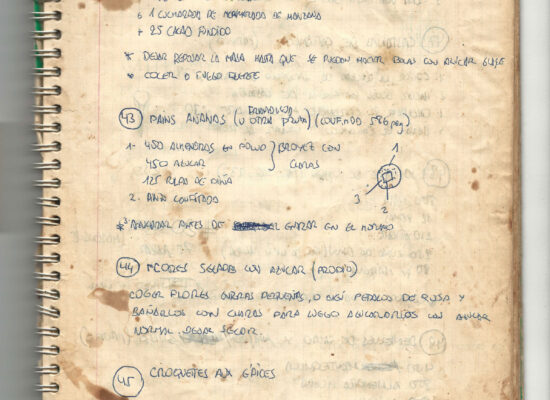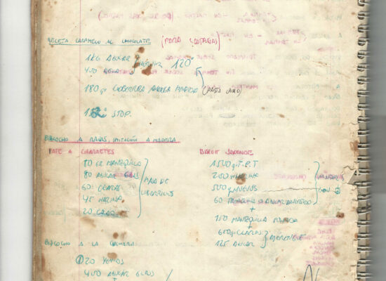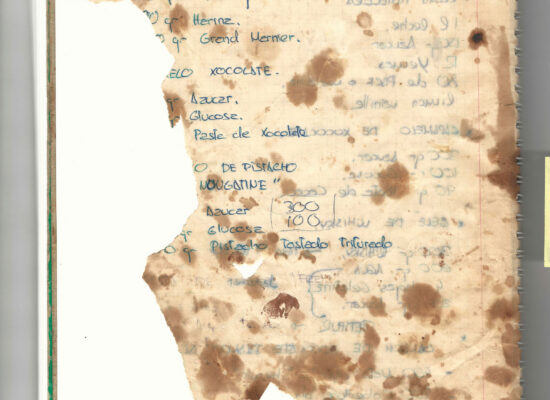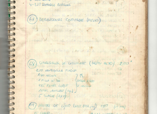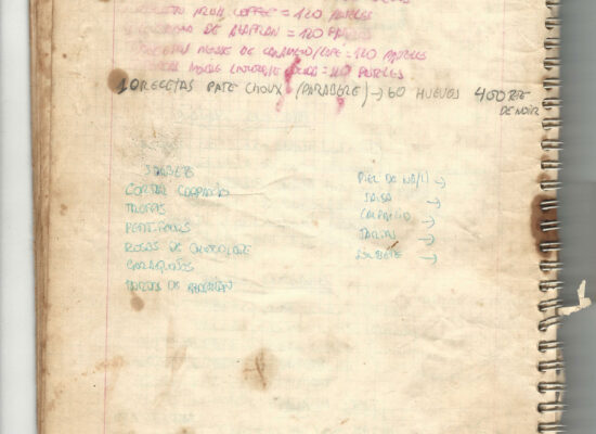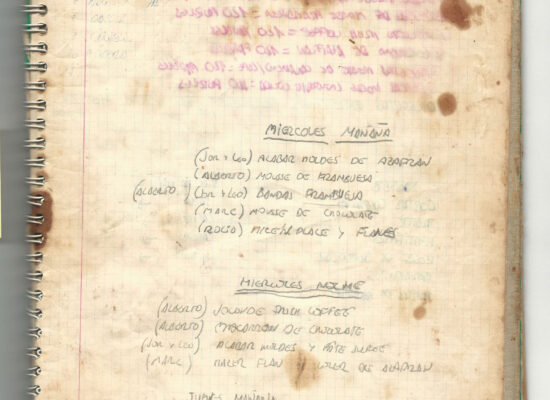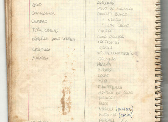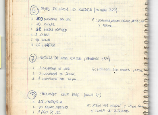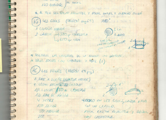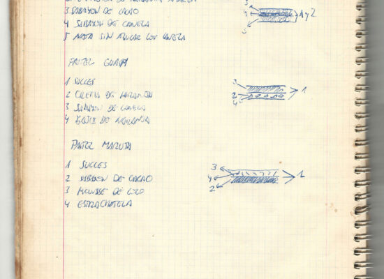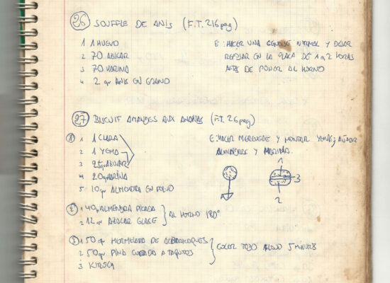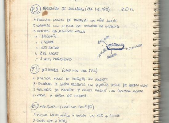 Observaciones: Recetas de tartas y pasteles. Listado de decoraciones con chocolate. Recetas propias y de libros. Lista de ideas para postres y pasteles. Listado de pasteles y petit-fours. Listado mise en place evento Vitoria.