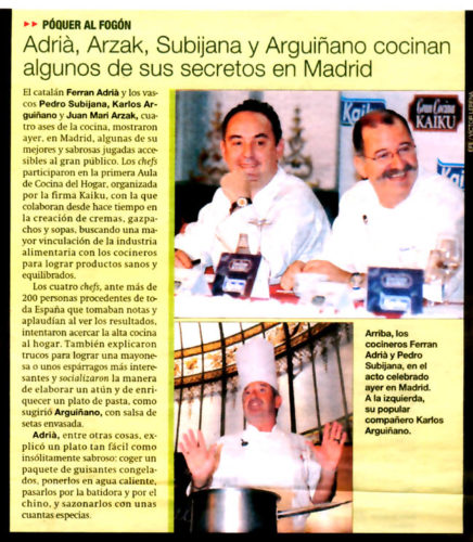 lo que se ha escrito > Búsquedas > Resultados > Adrià, Arzak, Subijana y Arguiñano cocinan algunos de sus secretos en Madrid. imprimir