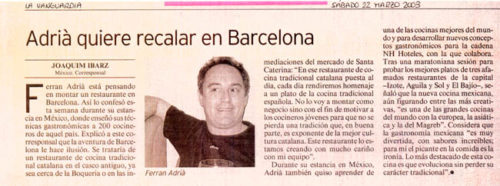 Adrià quiere recalar en Barcelona.