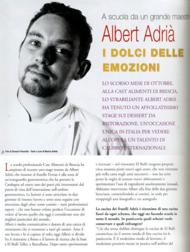 Lo scorso mese di ottobre, alla cast alimenti di Brescia, lo strabiliante Albert Adrià ha tenuto un affollatissimo stage sui dessert dda ristorazione. Un’occasione unica in Italia per vedere all’opera un talento di calibro internazionale.