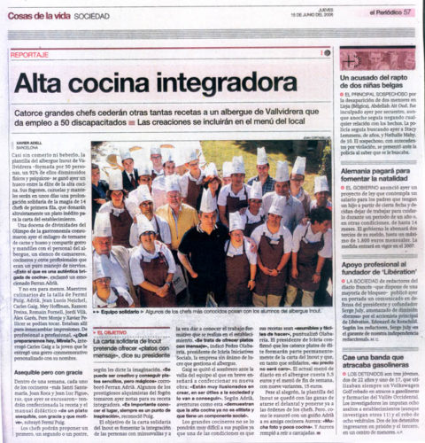 Catorce grandes chefs cederán otras tantas recetas a un albergue de Vallvidrera que da empleo a 50 discapacitados.