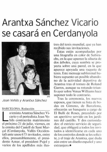 ARANTXA SÁNCHEZ VICARIO SE CASARÁ EN CERDANYOLA.
