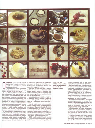 Such is the demand to eat at elBulli -the spanish restaurant voted the best in the world- that diners are chosen by lottery. Irish Times web designer Chirs Carpenter got lucky, and invited his colleague Kilian Doyle to accompany him.