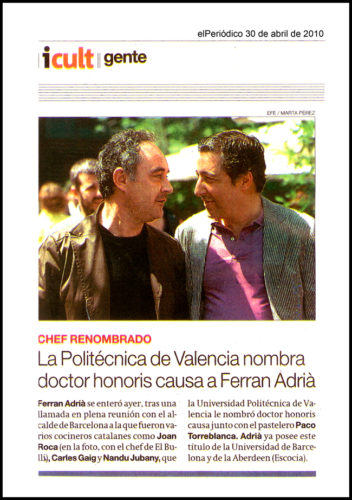 La Politécnica de Valencia nombra doctor honoris causa a Ferran Adrià.
