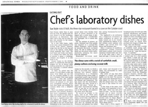 Sue Style visits El Bulli, the three-star restaurant buried in a cove on the Catalan coast. The Climax came with a ravioli of cuttlefish; small, plump cushion enclosing coconut milk