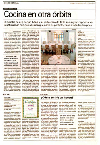 tipo de artículo: Reportaje idioma: Castellano fecha: 17/09/2000 protagonista: elBullirestaurante medio: MODENA página del artículo: 6