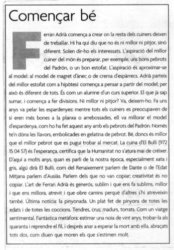 Ferran Adrià comença a crear on la resta dels cuiners deixen de treballar.