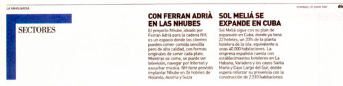 El proyecto Nhube, ideado por Ferran Adrià para la cadena NH, es un espacio donde los clientes pueden comer comida sencilla pero de alta calidad, con formas originales de servir cada plato. Mientras se come, se puede ver televisión, navegar por Internet y