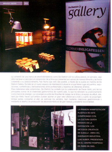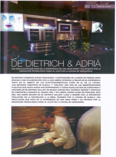 tipo de artículo: Reportaje idioma: Castellano fecha: 01/06/2008 protagonista: Ferran Adrià medio: DE DIETRICH GALLERY (Basauri) página del artículo: 20