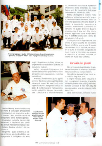 tipo de artículo: Reportaje idioma: Italiano fecha: 01/10/2001 protagonista: Albert Adrià medio: PASTICCERIA INTERNAZIONALE (Pinerolo) página del artículo: 114