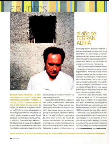 lo que se ha escrito > Búsquedas > Resultados > El año de Ferran Adrià imprimir