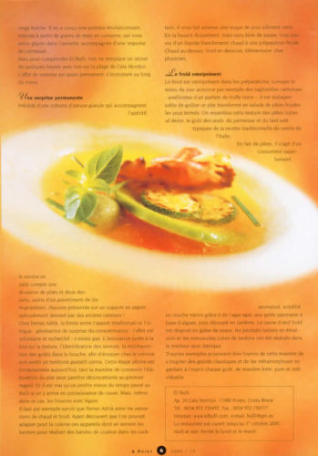 | lo que se ha escrito > Búsquedas > Resultados > EL BULLI, LABORATOIRE CULINAIRE DU 21 e SIÈCLE. | imprimir |