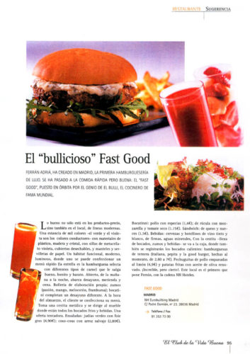 Ferran Adrià, ha creado en Madrid, la primera hamburguesería de lujo. Se ha pasado a la comida rápida pero buena: el Fast Good, puesto en órbita por el genio de elBulli, el cocinero de fama mundial.