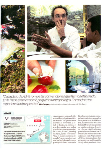 Un mano a mano con el catalán que es el alma de elBulli, restaurante que fue elegido el mejor del mundo por quinta vez. – Lo nuestro es vanguardia radical -, dice el hombre que quiso ser futbolilsta y terminó popularizando la cocina molecular.