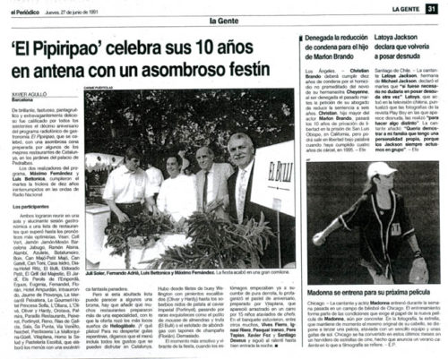 lo que se ha escrito > Búsquedas > Resultados > El Pipiripao celebra sus 10 años en antena con un asombroso festín. imprimir