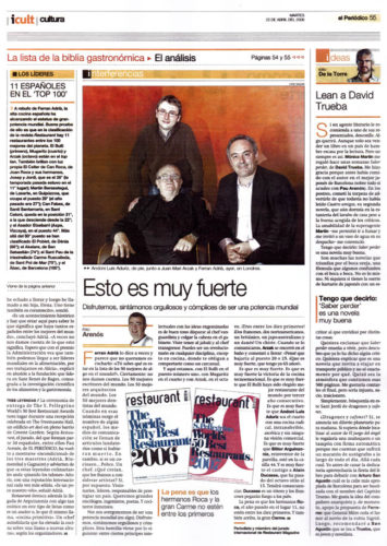 Ferran Adrià obtiene la distinción por tercera vez y España coloca a 3 chefs entre los 10 primeros.