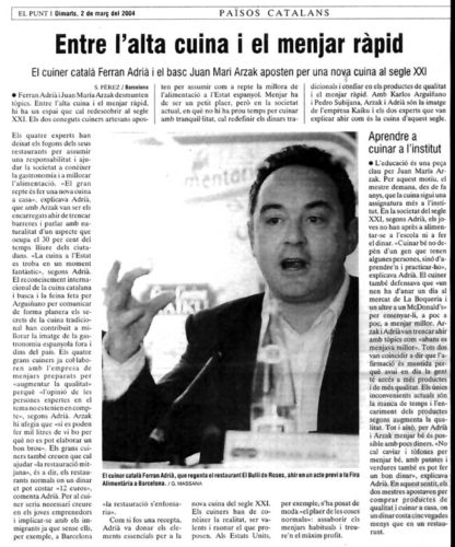 El cuiner català Ferran Adrià i el basc Juan Mari Arzak aposten per un nova cuina al segle XXI