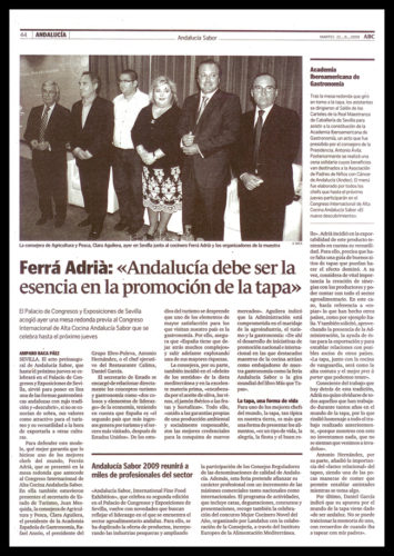 | lo que se ha escrito > Búsquedas > Resultados > Ferran Adrià: Andalucía debe ser la esencia en la promoción de la tapa. | imprimir |