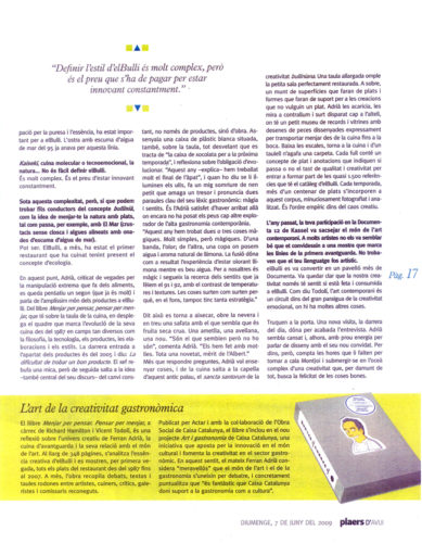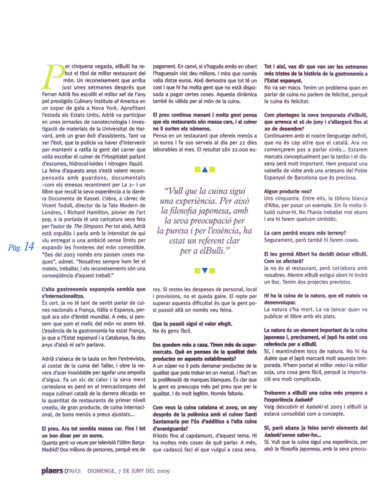 Trobem en Ferran Adrià una tarda al seu taller del carrer Portaferrissa de Barcelona, cansat pel ritme frenètic de la fama i de l’èxit i desitjós de tancar-se a cala Montjoi i posar en pràctica els conceptes culinaris que ha desenvolupat al llarg de l’hivern.