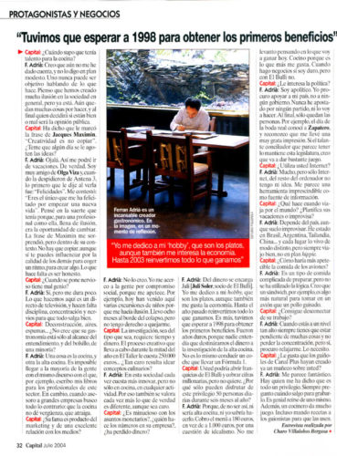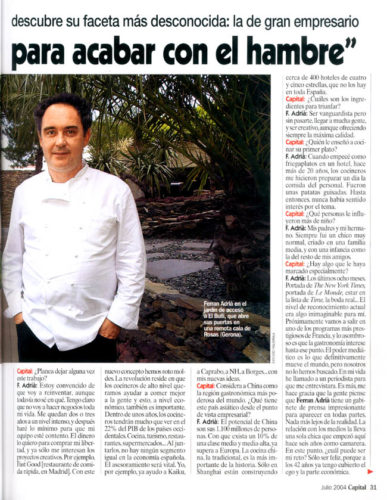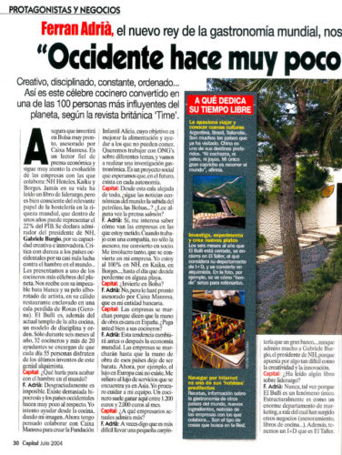 lo que se ha escrito > Búsquedas > Resultados > Ferran Adrià, el nuevo rey de la gastronomía mundial, nos descubre su faceta más desconocida. imprimir