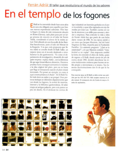 tipo de artículo: Reportaje idioma: Castellano fecha: 01/06/2001 protagonista: elBullirestaurante medio: GRANDES VIAJES (Madrid) página del artículo: 14