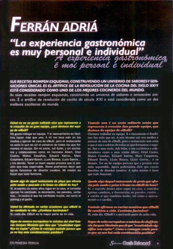 Sus recetas rompen esquemas, construyendo un universo de sabores y sensaciones únicas. Es el artífice de la revolución de la cocina del siglo XXI y está considerado como uno de los mejores cocineros del mundo.