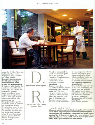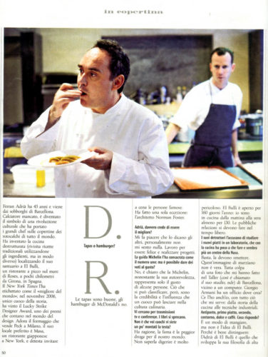 | lo que se ha escrito > Búsquedas > Resultados > Ferran Adrià: Manipolatore di cibo? Macché, sono solo un «cocinero»».» | imprimir |