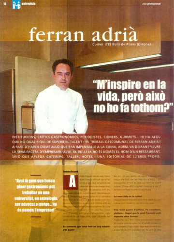 | lo que se ha escrito > Búsquedas > Resultados > FERRAN ADRIÀ M’inspiro en la vida, però això no ho fa tothom? | imprimir |