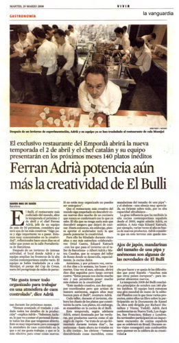 | lo que se ha escrito > Búsquedas > Resultados > Ferran Adrià potencia aún más la creativitat de elBulli. | imprimir |