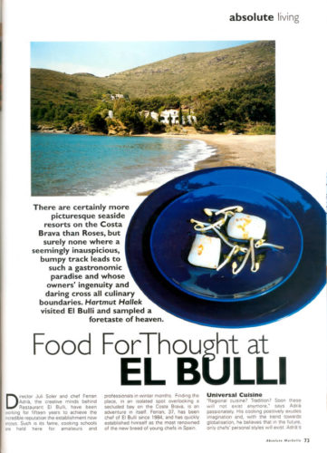 | lo que se ha escrito > Búsquedas > Resultados > Food For Thought at El Bulli | imprimir |