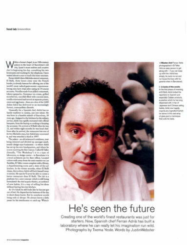 Creating one of the world’s finest restaurants was just for starters. Now, Spanish chef Ferran Adrià has built a laboratory where he can really let his imagination run wild.