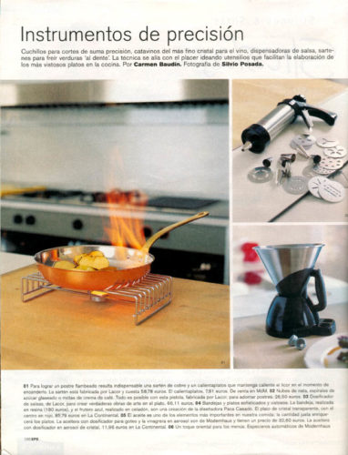 Cuchillos para cortes de suma precisión, catavinos del más fino cristal para el vino, despensadoras de salsa, sartenes para freír verduras al dente.