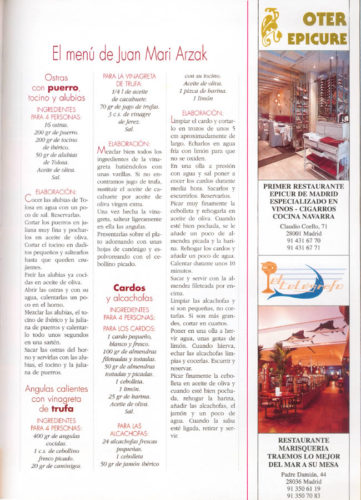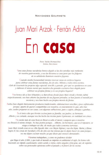 | lo que se ha escrito > Búsquedas > Resultados > Juan Mari Arzak – Ferran Adrià En casa | imprimir |