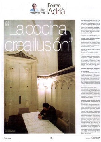 Algunos han dicho de él que es el Salvador Dalí de la cocina, otros le llaman profeta, y muchos dicen que es un genio. Sin embargo, Ferran Adrià no se inmuta. Parece inmune a las alabanzas. Son opiniones subjetivas, dice, aunque reconoce que siempre es
