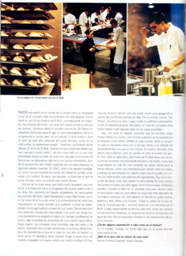 tipo de artículo: Reportaje idioma: Castellano fecha: 01/03/2002 protagonista: elBullirestaurante medio: TRAVESÍAS (Ciudad de México) página del artículo: 55