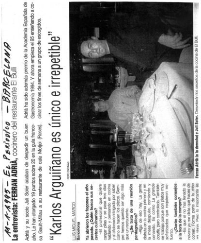 | lo que se ha escrito > Búsquedas > Resultados > La entrevista: Ferran Adrià, cocinero del restaurante El Bulli. | imprimir |