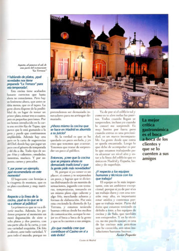 Se abre una nueva temporada en La Terraza del Casino de Madrid. Un restaurante que introduce algunas innovaciones en sus platos y que aspira a ser punto de referencia de los comensales madriliños más exigentes.