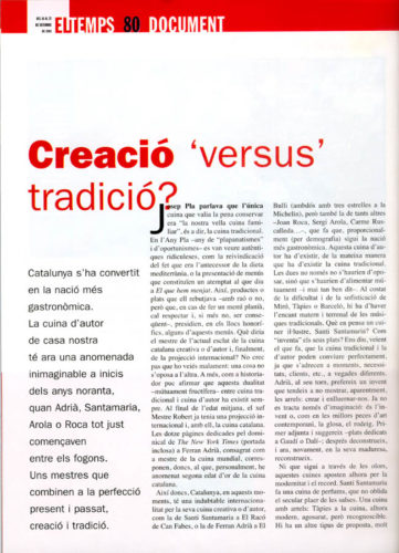 Un reportatge del magazín de The New York Times sobre la cuina de Ferran Adrià confirma el que els gastrònoms de casa no paren de repetir des de fa uns anys: la cuina creativa catalana es troba en un moment esplèndid. Aquest fenomen, però, coincideix amb