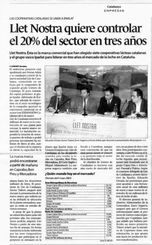 | lo que se ha escrito > Búsquedas > Resultados > Llet nostra quiere controlar el 20% del sector en tres años | imprimir |