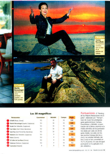 Por tercer año consecutivo Tiempo ha cruzado las puntuaciones otorgadas por las tres guías gastronómicas más prestigiosas – Gourmetour, Campsa y Michelin – para obtener la lista de los 50 mejores restaurantes de 2006. Es el ránking más unánime.