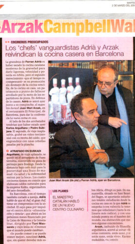 Los chefs vanguardistas Adrià y Arzak reivindican la cocina casera en Barcelona