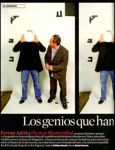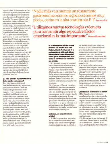 tipo de artículo: Entrevista idioma: Castellano fecha: 10/05/2009 protagonista: Ferran Adrià medio: LA VANGUARDIA MAGAZINE (Barcelona) página del artículo: 22