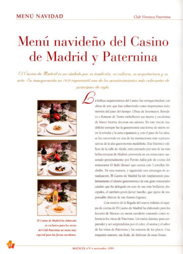 | lo que se ha escrito > Búsquedas > Resultados > Menú navideño del Casino de Madrid y Paternina | imprimir |