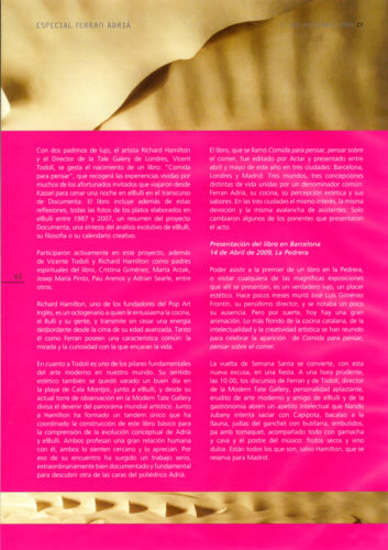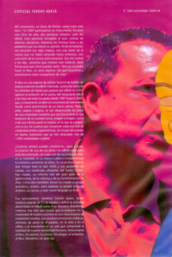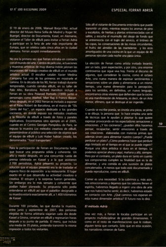 El 19 de enero de 2006, Manuel Borja-Villel, actual director del Museo Reina Sofía de Madrid y Roger M. Buergel, director de Documenta, Kasel, en Alemania, visitaron el Taller de elBulli para invitar a Ferran Adrià a participar en la feria de arte más importante de Europa, que se celebra cada cinco años en la ciudad alemana. Ferran aceptó inmediatamente.