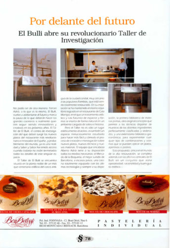 POR DELANTE DEL FUTURO.EL BULLI ABRE SU REVOLUCIONARIO TALLER DE INVESTIGACION