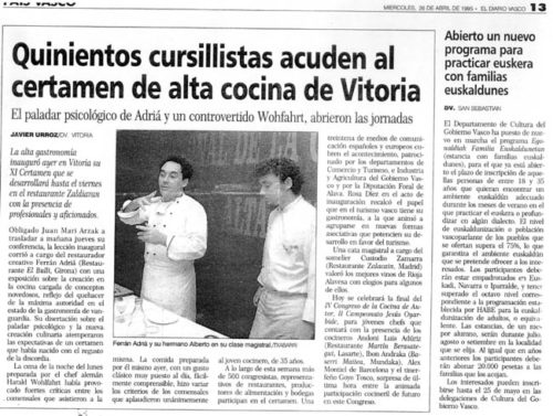 Quinientos cursillistas acuden al certamen de alta cocina de Vitoria.